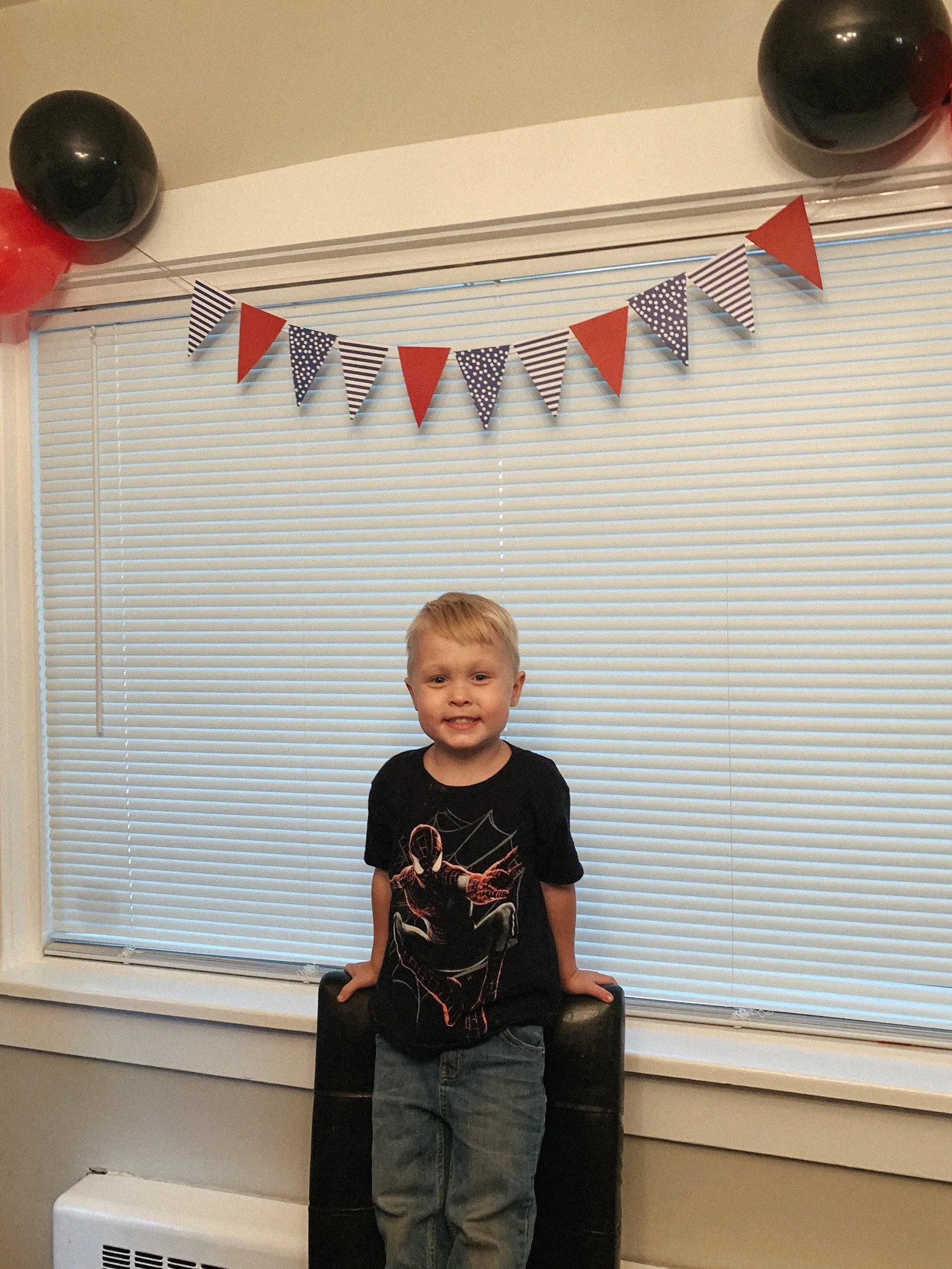 We woke him up singing happy birthday and throwing balloons in his room and he got to eat his favorite breakfast of Fruit Loop cereal! We then played at a McDonalds Play place later in the morning with some of his cousins, got some lunch and then he went to preschool. After daddy got home we had dinner, opened gifts, had cake, Henry rode his new bike for a bit and then we watched a spiderman cartoon together. He is already counting down the days to his next birthday ha ha. Love this big boy!